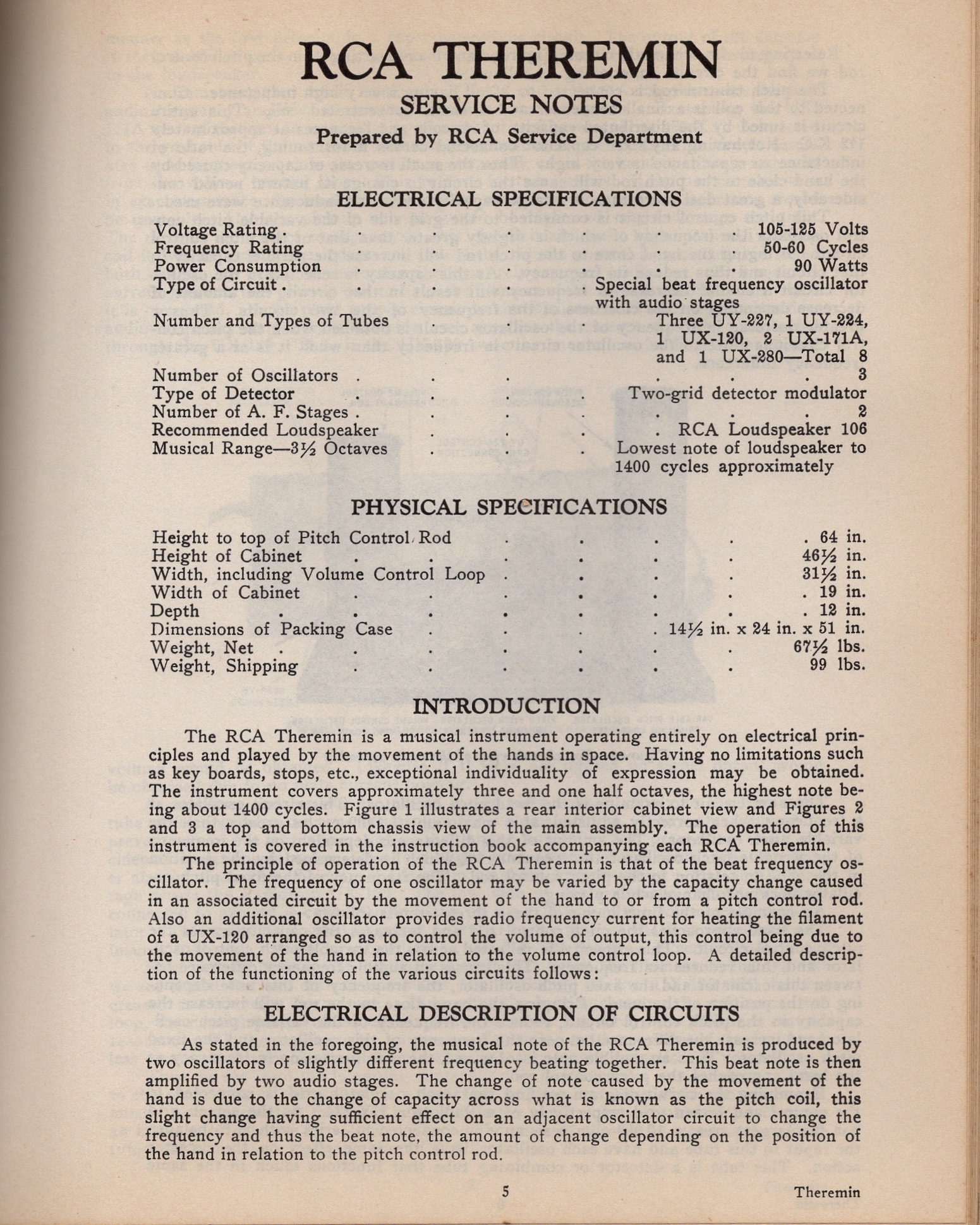 Book; RCA; RCA Theremin; Service Notes;