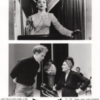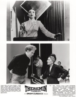 Both scanned images here show the two included press kit photos for the documentary; Theremin: An Electronic Odyssey (1993). One photograph contains two images of Leon Theremin; inventor of his own musical the theremin. The other photo features two photos with one being a young Clara Rockmore + another image of Clara Rockmore and the film's director Steven M. Martin.